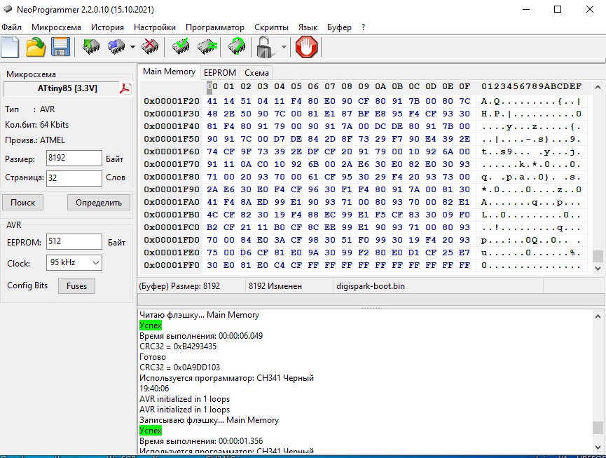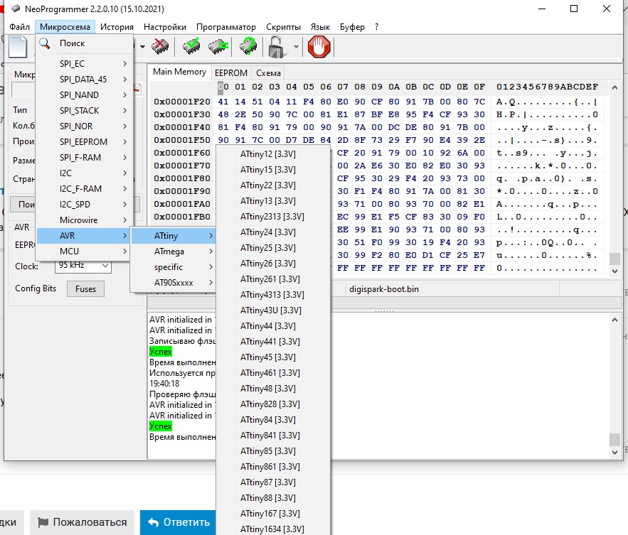 В настоящее время выбрано: ATtiny85 [3.3V] 64 Kbits, 8 Kbytes