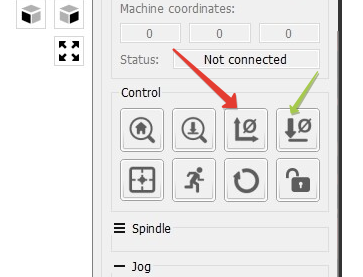 Красная стрелка указывает на нулевую точку координат проекта, а зеленая - на верхнюю поверхность заготовки , нулевыю высоту .Выставляете -и вперед.