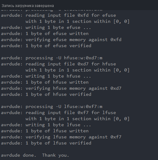avrdude: processing -U hfuse:w:0xd7:m