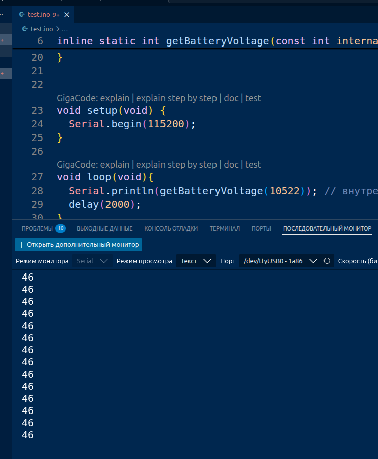 Т.е. если реальное напряжение 4,7 В, он должен возвращать целое число 47.