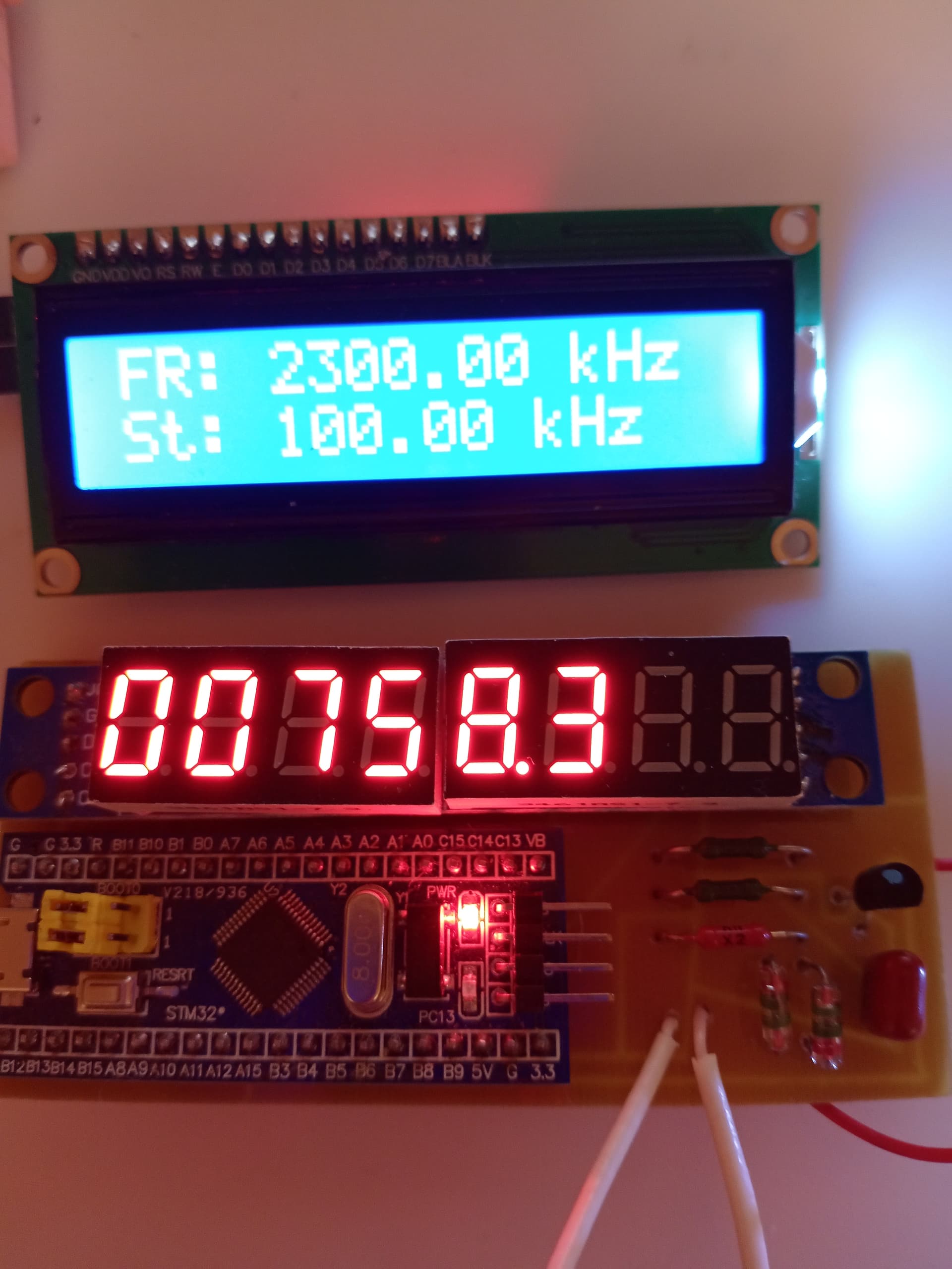 Да и если чатоту прибавить болше 2300 кГц, частотомер показывает 104 и на этом все.( я так понимаю показывает ошибку)