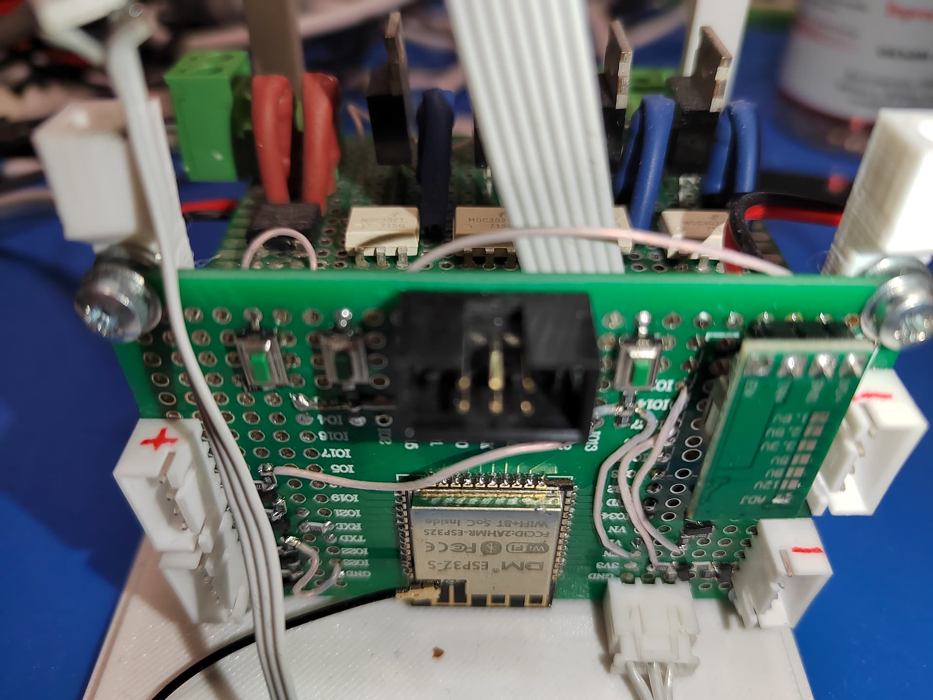 Отверстия слишком мелкие и слишком близко подходят к проводникам платы, закрутив туда М3 рискуем их замкнуть. Потому просто прижимаю платы сверху мелкими уродливыми кронштейнами.