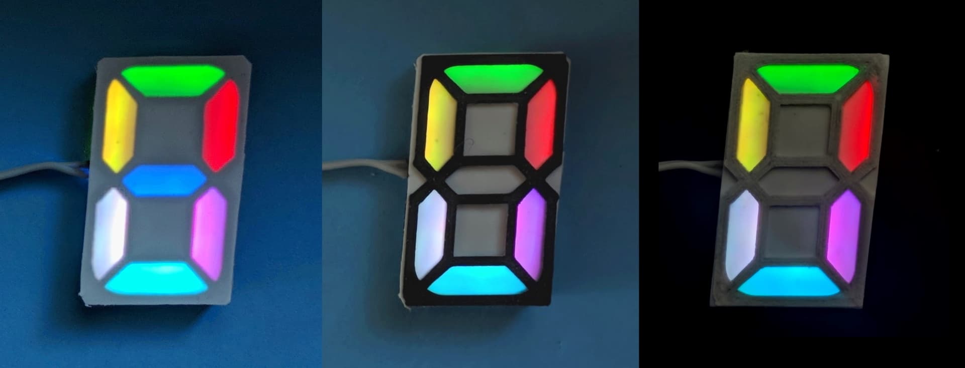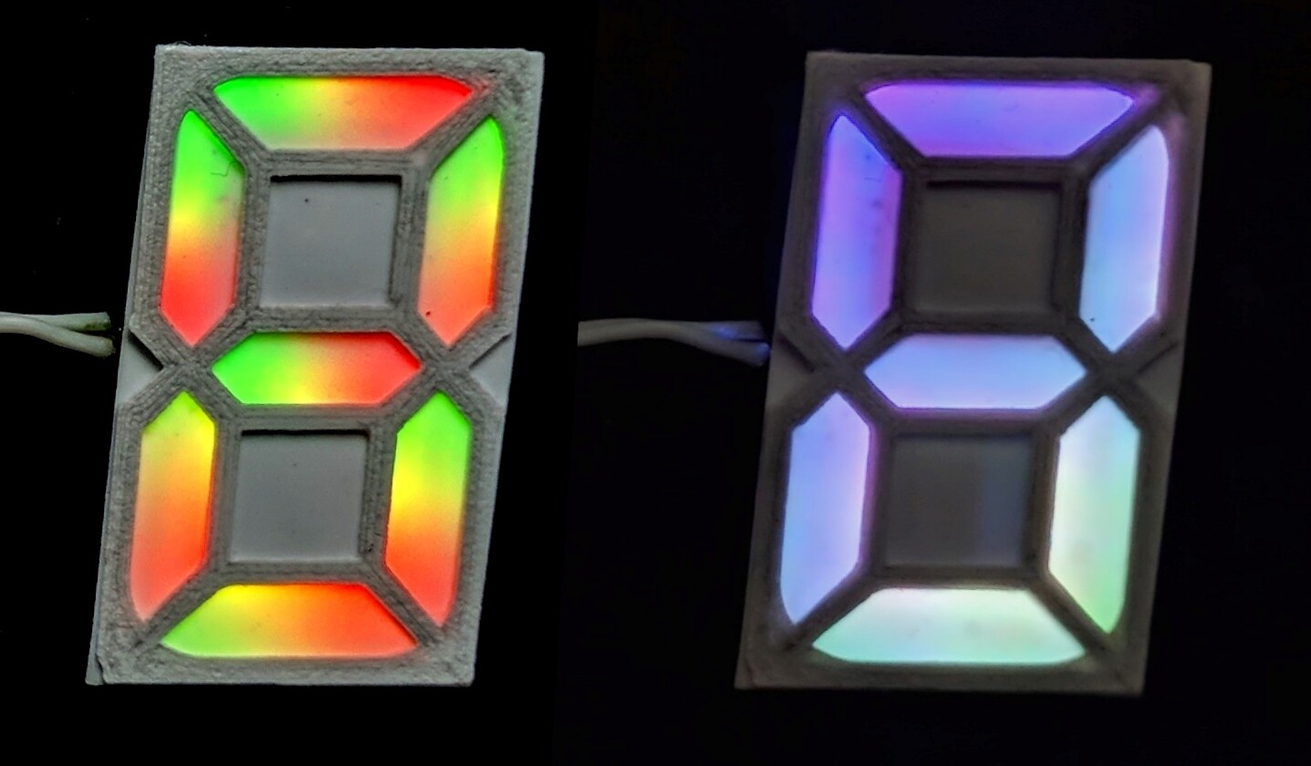 Нет, ну общий цвет в пределах цифры уместен. Так можно отделять часы от минут, единицы от десятых, исключить точки разделения, группировать в наборы по цвету, не меняя дистанцию между цифрами. В пределах сегмента конечно уже спорный момент. А градиент это украшательство.