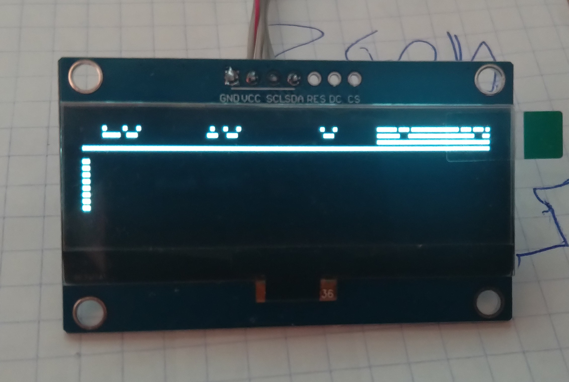 Хочу заменить дисплей вот в этом проекте, я его делал, он работает, но родной дисплей мал. И в общем что то пошло не так, картинку показывает как бы через строку… Перемычки для работы с I2C запаяны, адрес определяется 0х3С. Есть еще информация что вывод CS нужно на землю замыкать, пинцетом подтыкал - ничего не меняется. Буду рад помощи…