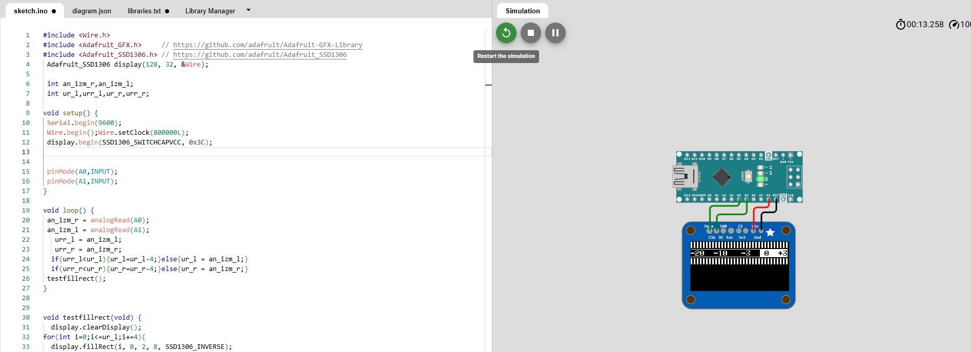 В симуляторе работает, правда что то сругнулось на установку аналогового входа, видимо это связано