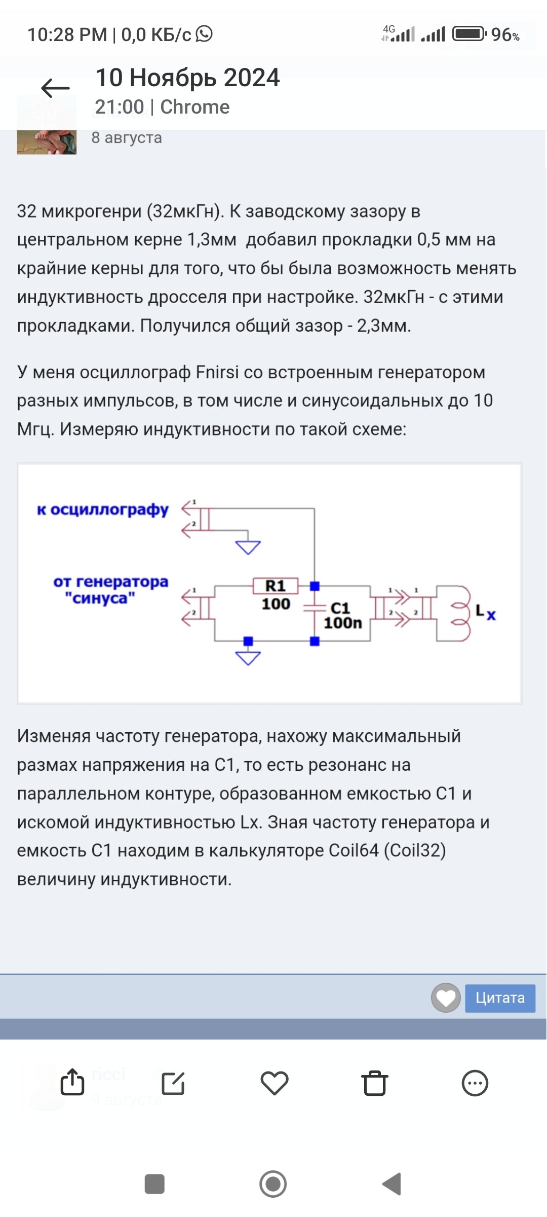 я же выше, где давал осциллограмму уже говорил, что для настройки паралельного контура достаточно одного канала осциллографа, логично было бы предположить, тоже самое и для последовательного, но строить по минимум напряжения, ан нет, тут нужны два канала и строить надо по совпадению фазы тока с фазой напряжения