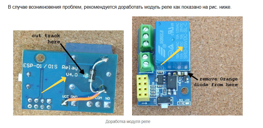 Всем привет. Подскажите пожалуйста, есть такой модуль Esp-01/01s relay module v5.0 как по ссылке https://smacont.ru/applying/019/ . Подал +5V на колодку, к реле подключил 2 светодиодные лампочки - реле стало зависать в одном состоянии и не переключается. Взял такой же модуль v4.0 и все работает - прошивку не менял. Чем вообще различаются эти модули v4.0 и v5.0 ??? (кроме как диодом d1) . По ссылке рассмотрен вариант как доработать данный модуль, могу ли я использовать диод 4007 вместо 4148???