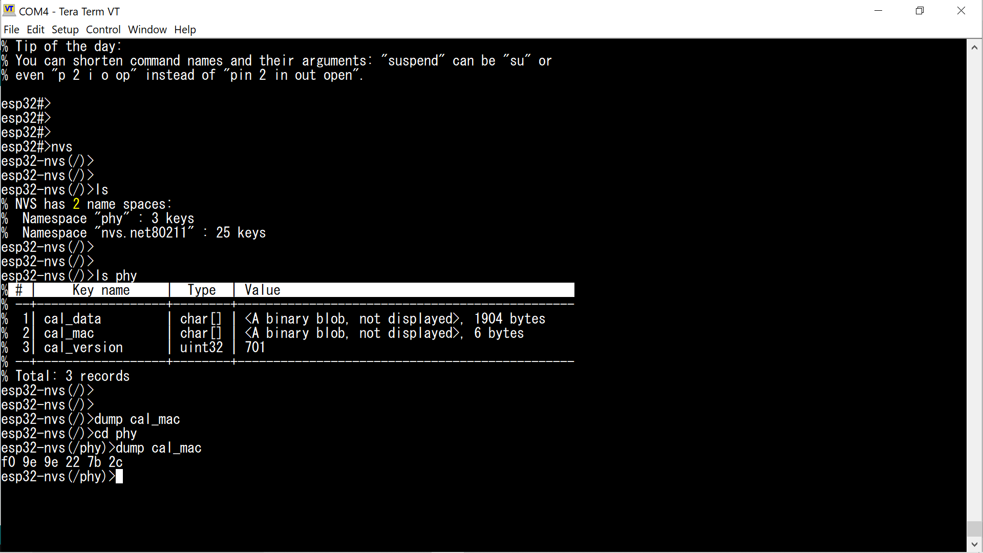 По NVS можно лазить на манер файловой системы: есть команды ls, cd, rm и т.п.