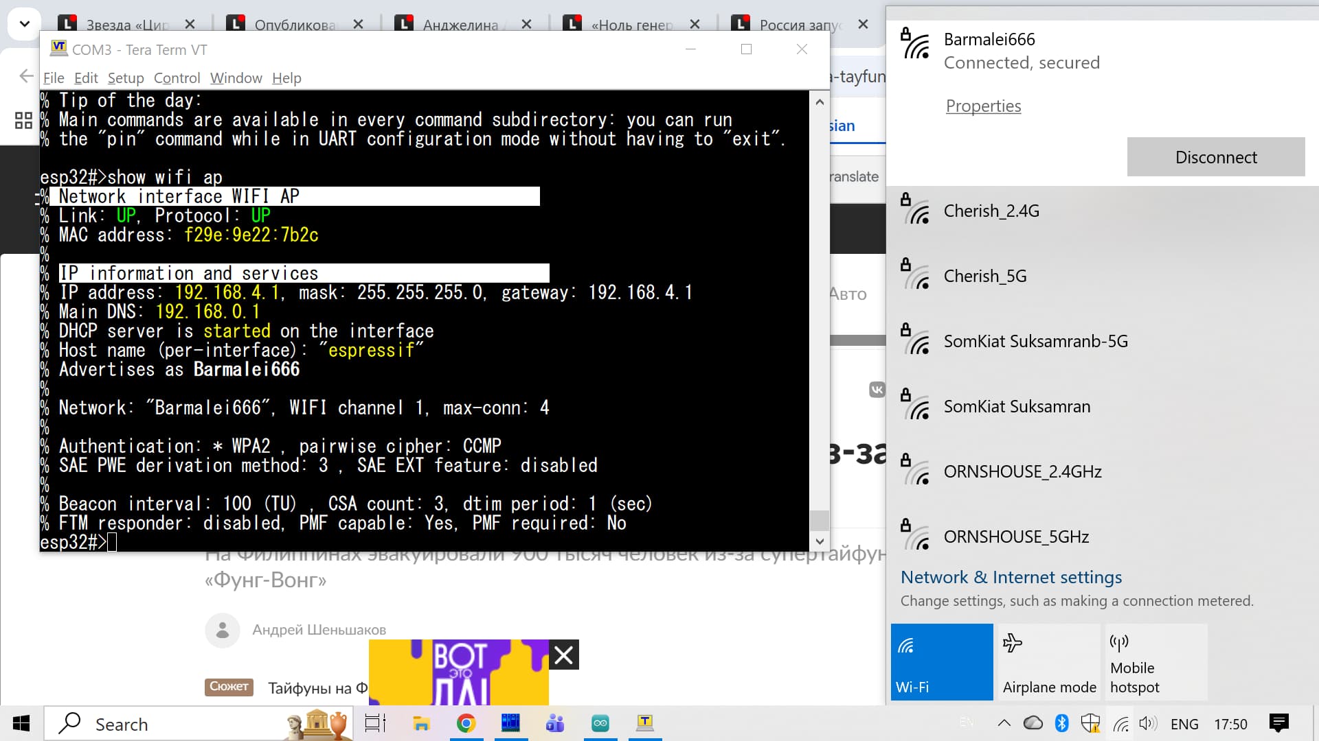 В командах шелла, конфигурация еспшки для работы “удлиннителем вайфая” совсем коротенькая: