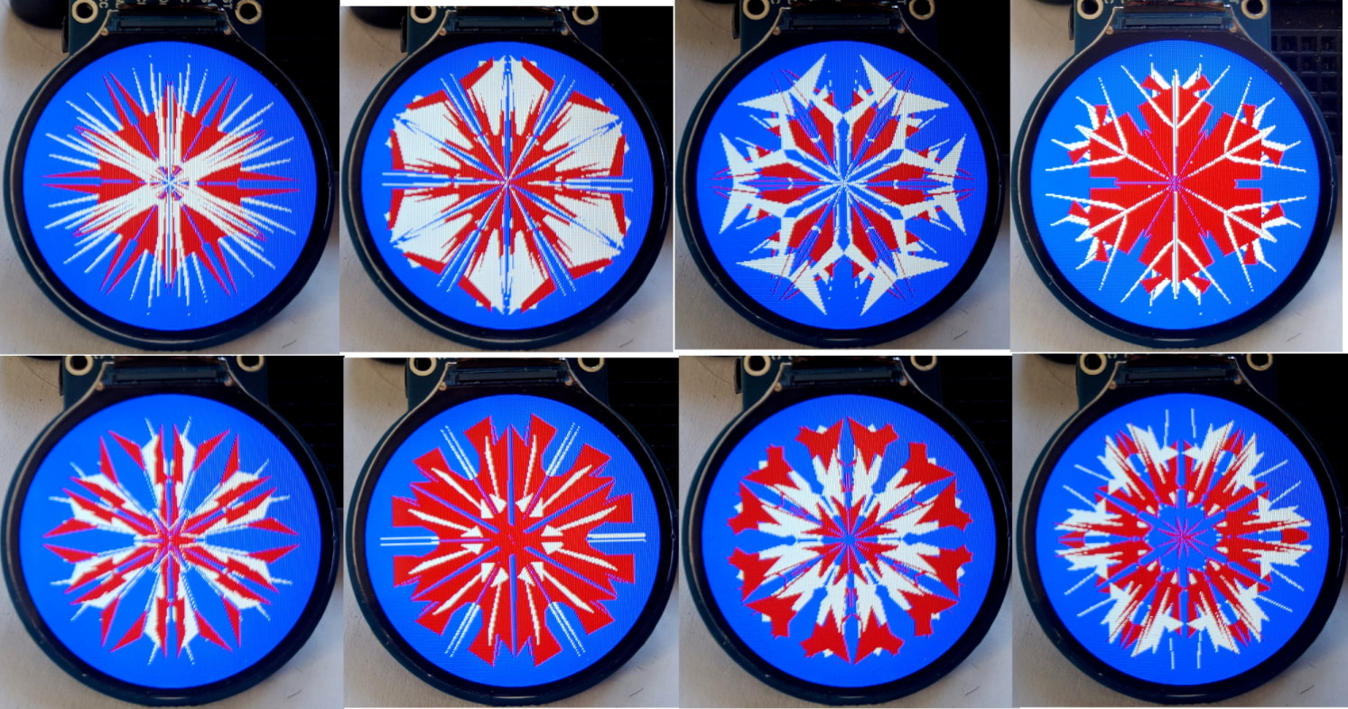 Красиво, а скетч чего не выкладываете? Я б попробовал переделать под GC9A01A. Узоры получаются круглые.