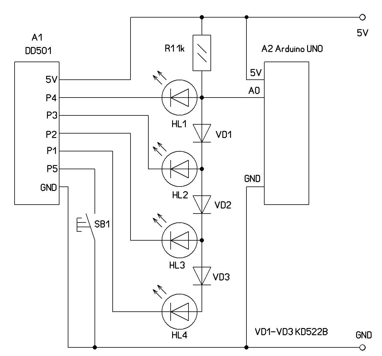 Кстати как то надо придумать схему не на 4 входа Ардуино, а всего на один. С другой стороны резисторы, диоды…может рациональней занять 4 пина МК.