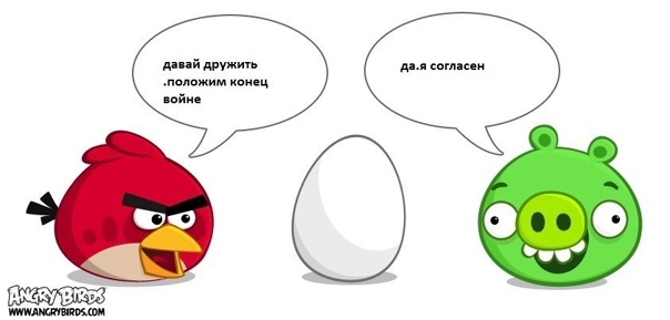 Ангри бёрдс ещё могут яйца нести, а свинья их ловить может.
