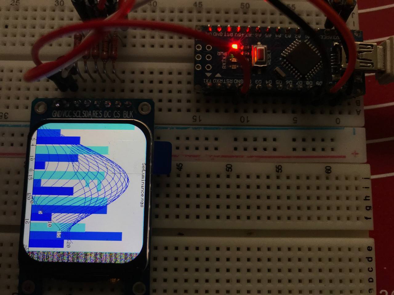 В loop два графика, если их закомментировать - должна быть одна красная буква F на черном фоне и рамка в один пиксель по краям дисплея.