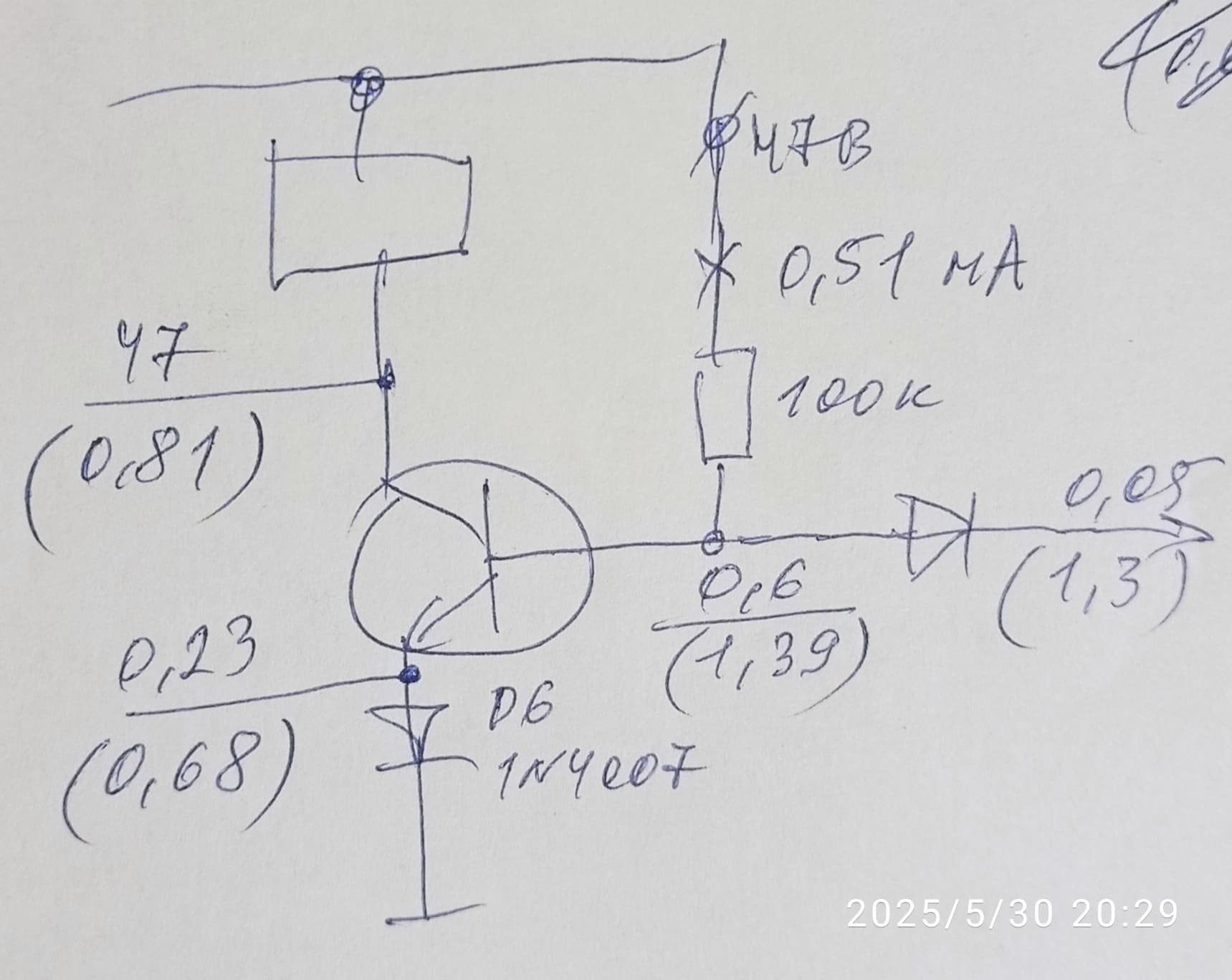 Падение напряжения на Д7 1N4148 при 0.5 мА составляет 0.6 В. А при 20 мА почти 0.8 В.