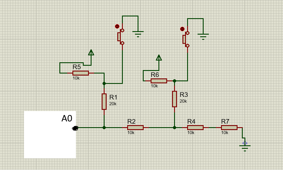 Допустим, при 4.096В опорного напряжения, если Кнопка1 даёт 256мВ, а Кнопка2 1024мВ,то результатом АЦП будет 0b001010000.