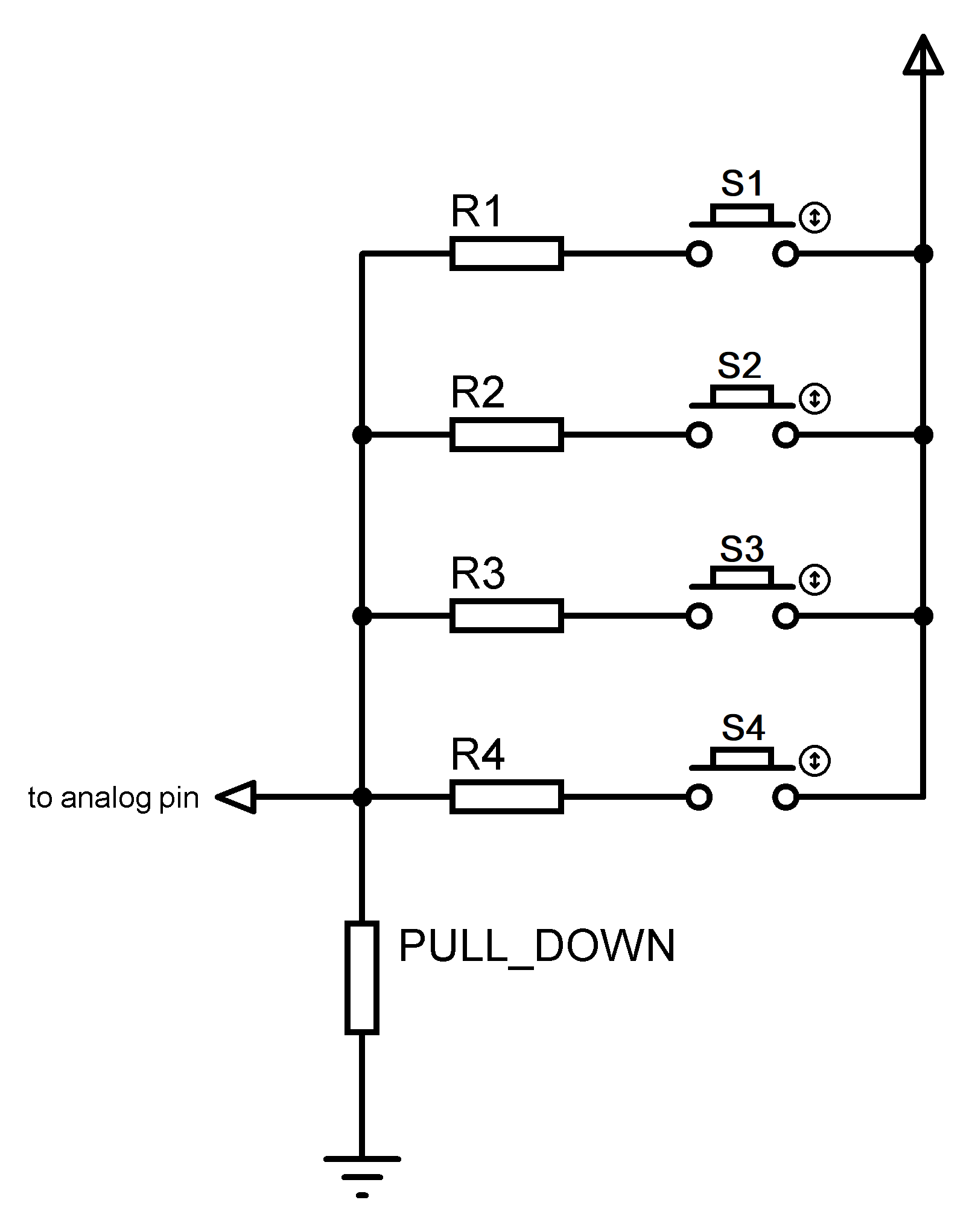 Вот, я об этом и спрашиваю. Ответьте мне, Вам достаточно иметь 4 кнопки на одном аналоговом входе? Чётко ответьте. Если достаточно, то не вопрос, щас сделаем. Вот, если больше, там посложнее.
