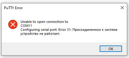 А тогда нужно посмотреть настройки Serial самого Putty. Или/и попробовать подключиться другим эмулятором терминала.