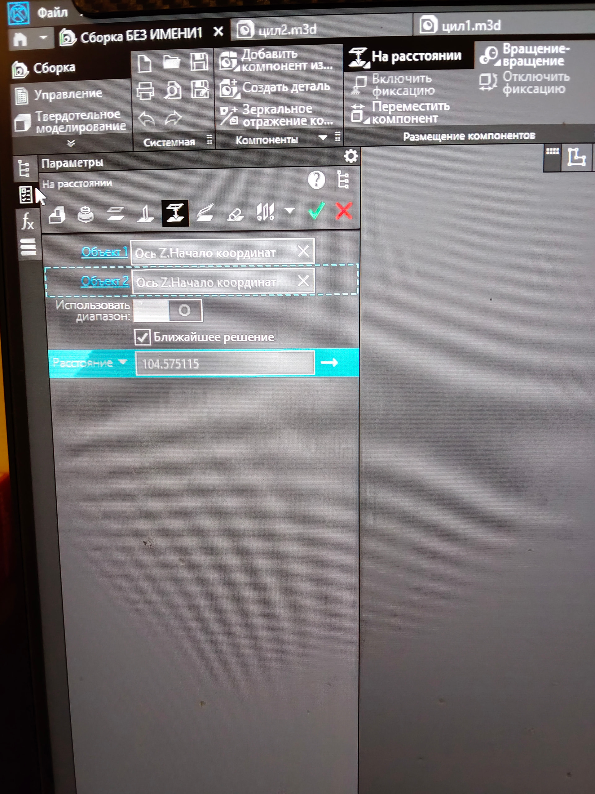 Кто-нибудь может объяснить как в «Сборке» (когда собирается модель из разных отдельных моделей) задать размер между двумя разными «цилиндрами»?