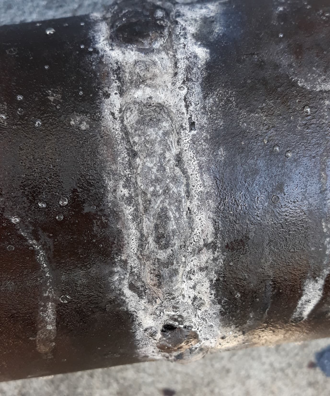 ржавая труба без предварительной разделки кромок, встык, разными (всеми что были) электродами.