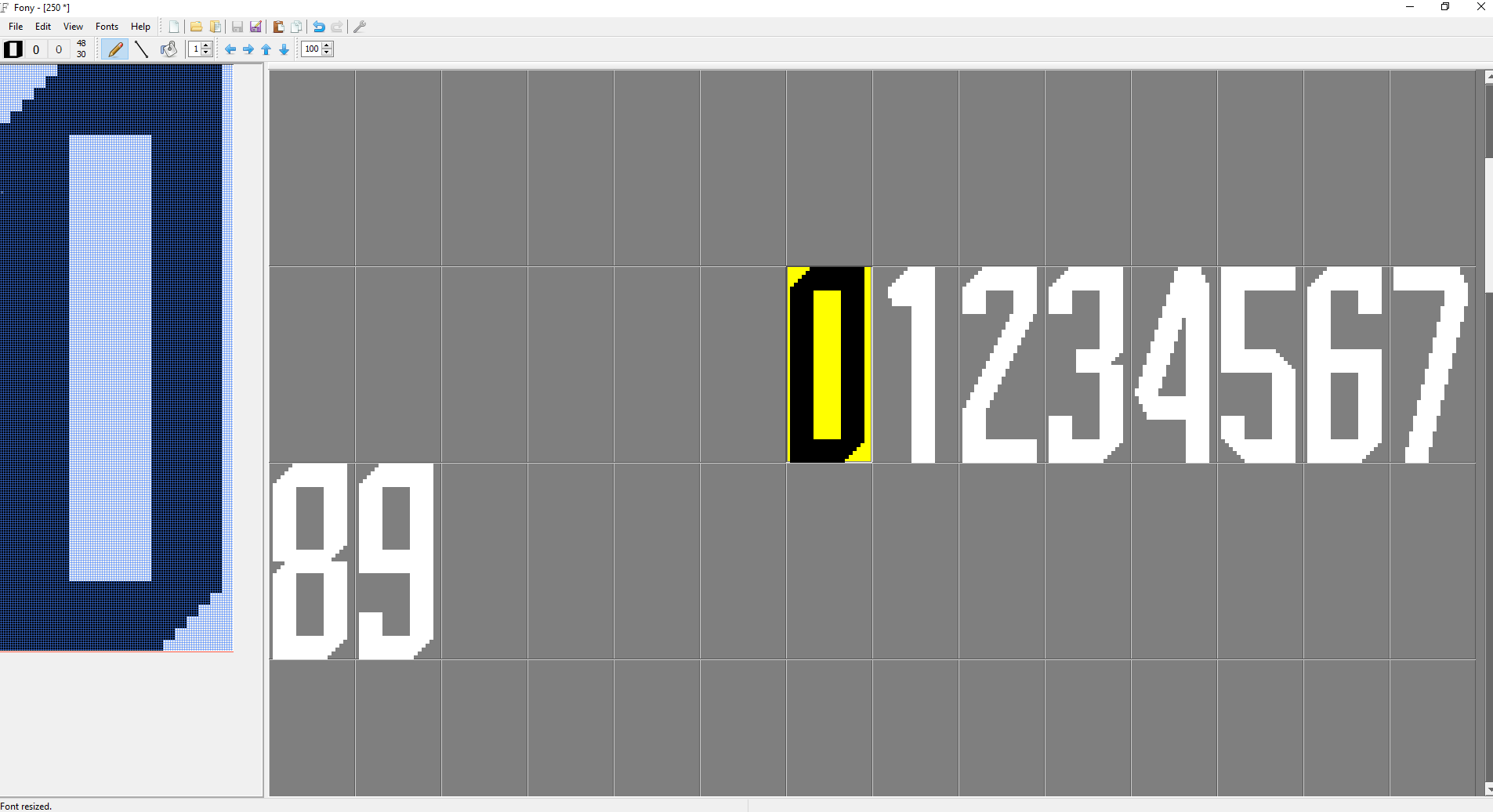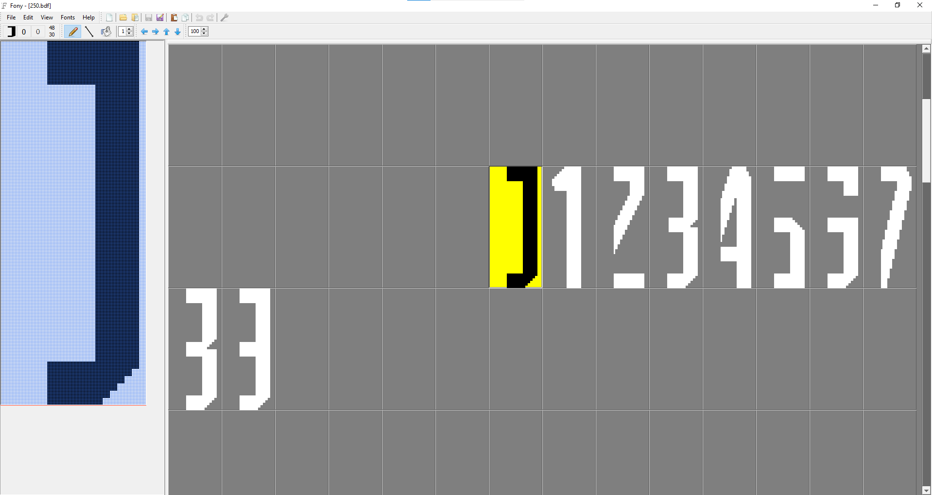 Правда пока вышло только для мелких, а с большими пока засада. Может программы не предназначены для ограменного шрифта, может руки кривые. До экспорта в BDF всё вроде хорошо.