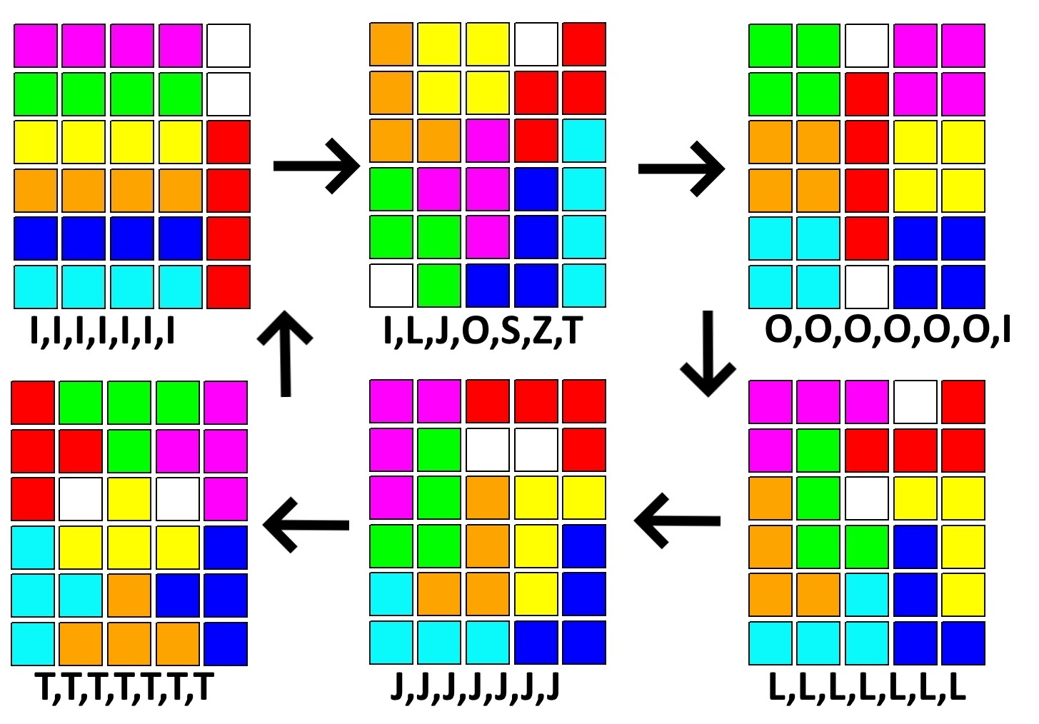 Задача, имея два пусто-места, собрать из разноцветных квадратиков все тетрамино.