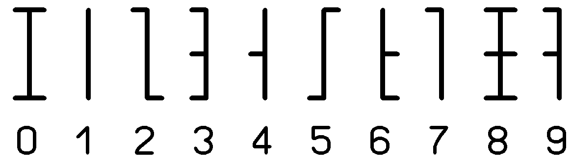 { B00010, B00010, B00010, B00010, B00010, B00010, B00010, B11110 } // 7 Right bottom - 3,5,9