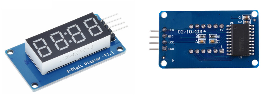 Широко известный модуль ТМ1637, построенный на 4-разрядном 7-сегментном цифровом индикаторе с высотой знакоместа 0.36 дюйма и микросхеме ТМ1637, давно оценен любителями цифровых самоделок за простоту его подключения к различным устройствам, так как является полноценным блоком индикации. Для его подключения требуется всего четыре провода. Пожалуй, его единственным недостатком можно назвать малый размер знаков для применения в более или менее серьезных устройствах, например в настольных часах.