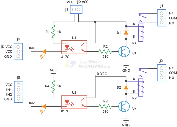 Питание +5В подается на плату D1 и на контакт JD-VCC HW-280