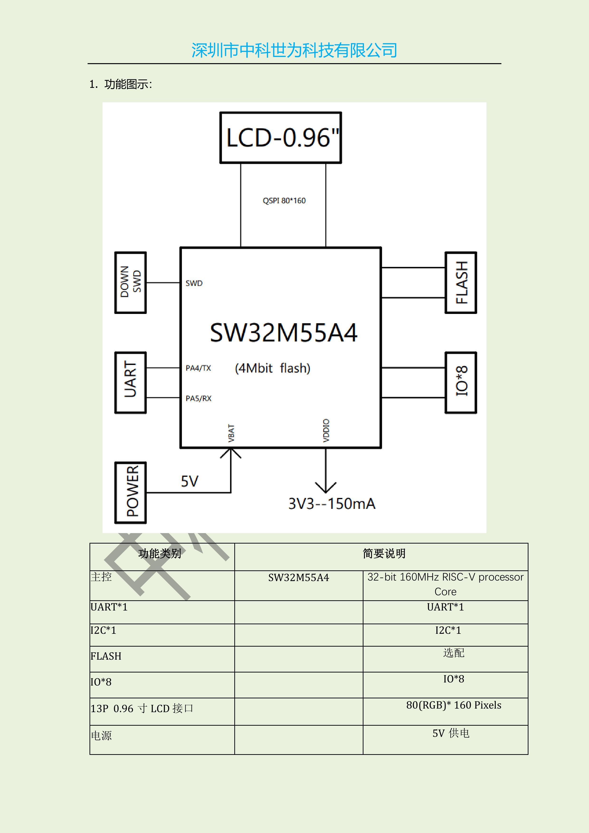 SW32M55A4 - это контроллер дисплея, навроде ST7735, для подключения дисплея по SPI нужны пины с 8 по 13.