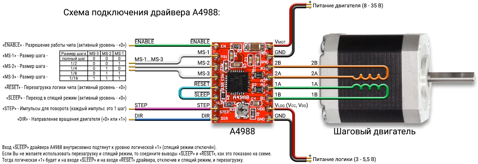 Это перемычка между RESET и SLEP только для А4988 на TM2208 таких пинов нет, соответственно перемычка не нужна. Но не забудьте подать +5В на перемычку между VIO и MS1.