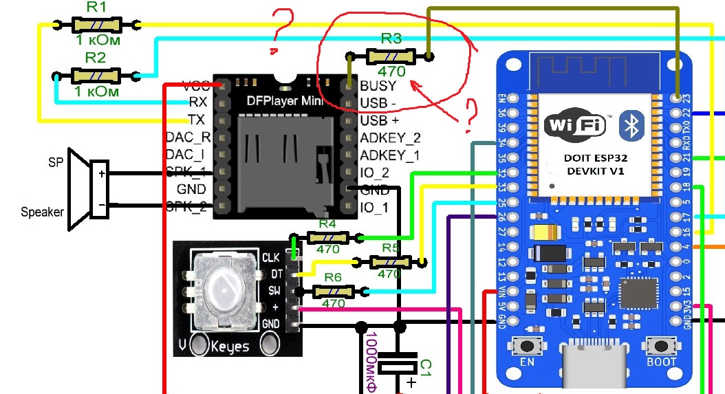 Для успокоения души, можно не устанавливать. Возможно он защитит пины плеера и esp от не правильно сконфигурированного пина, при испытаниях и настройки. Впрочем как и остальные ниже по схеме.