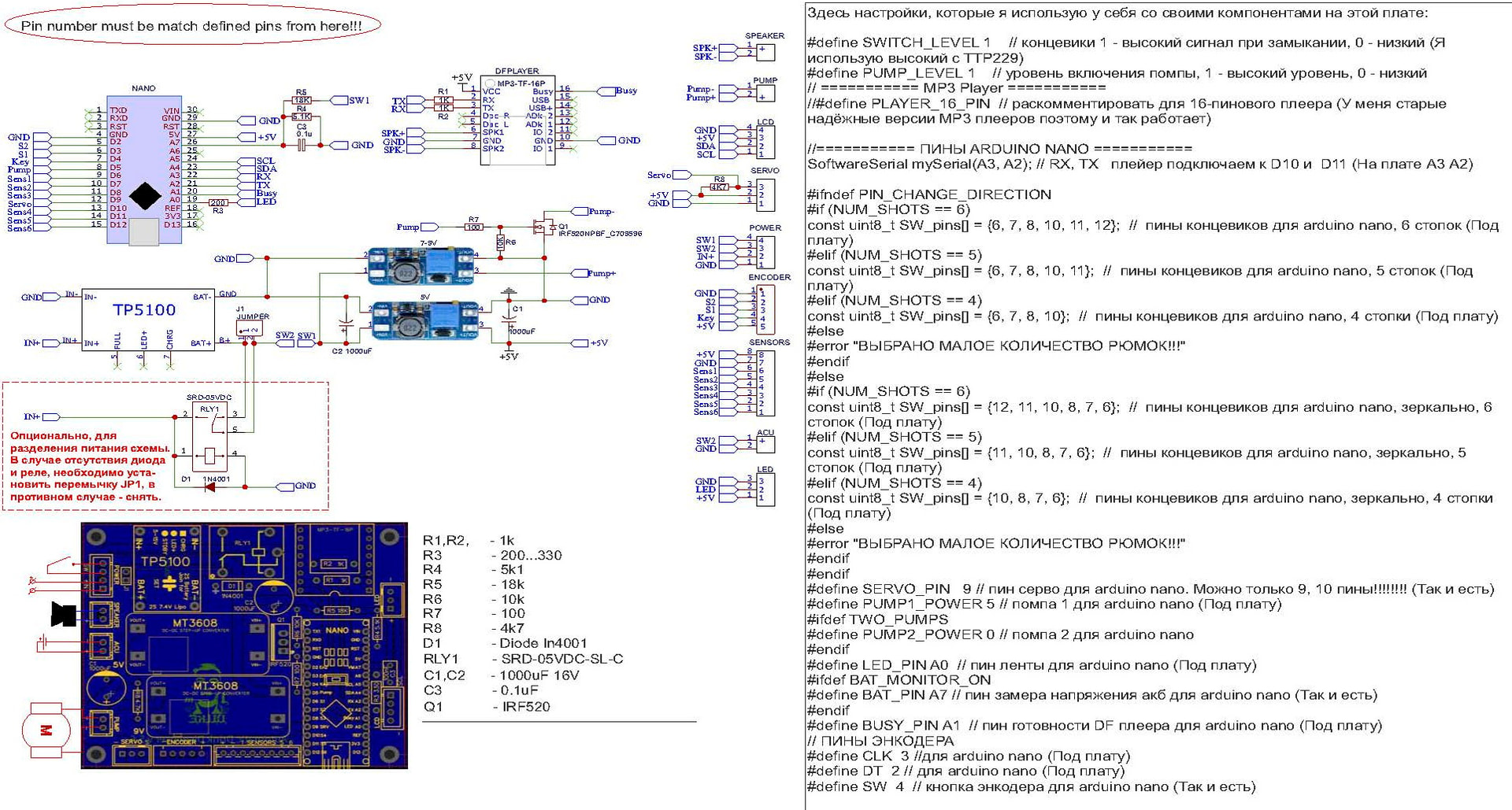 На ардуино нано у меня вот эта схема (печатную плату покупал), потом такую же переделывал по есп32 (выше об этом писал)
