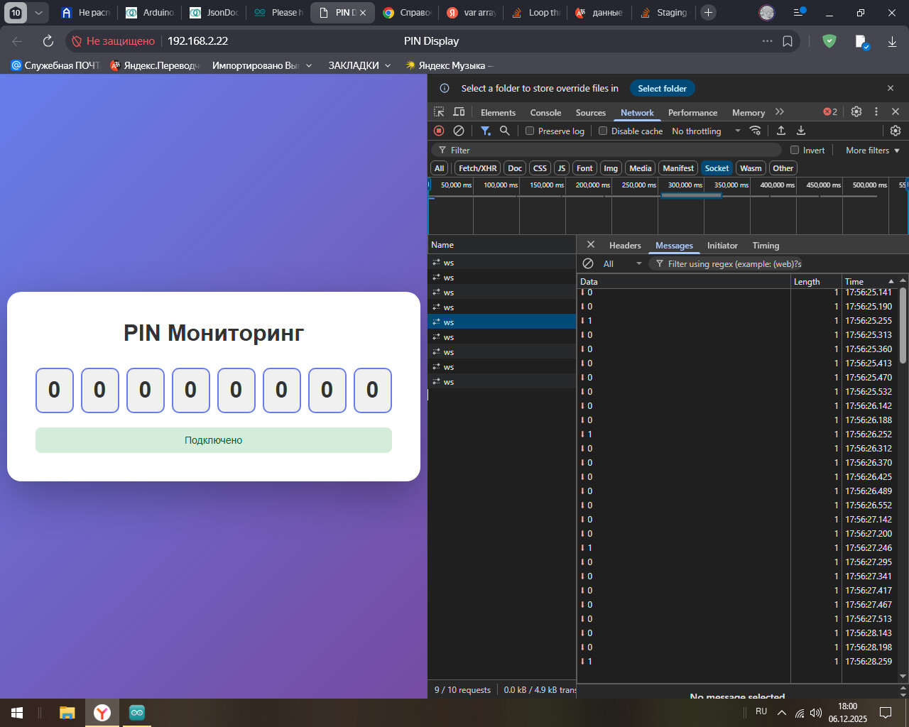 попробуй в тесте просто отправить ws.textAll(String({“pin”:[1,0,0,0,0,0,0,1]}));
