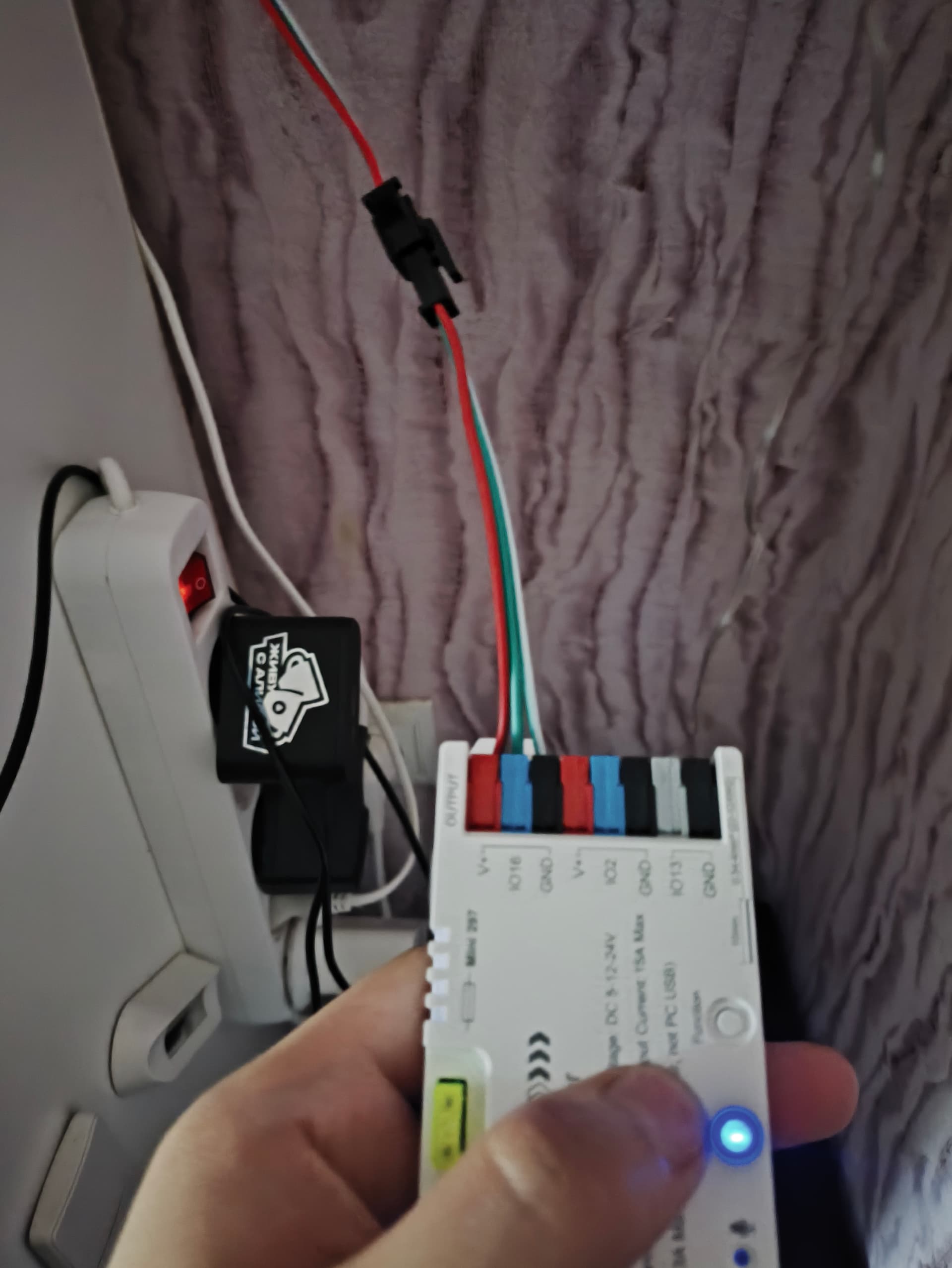 Ты предпологаешь что у него земля и DIN, былы подключены в начале ленты, а питание в конце,
