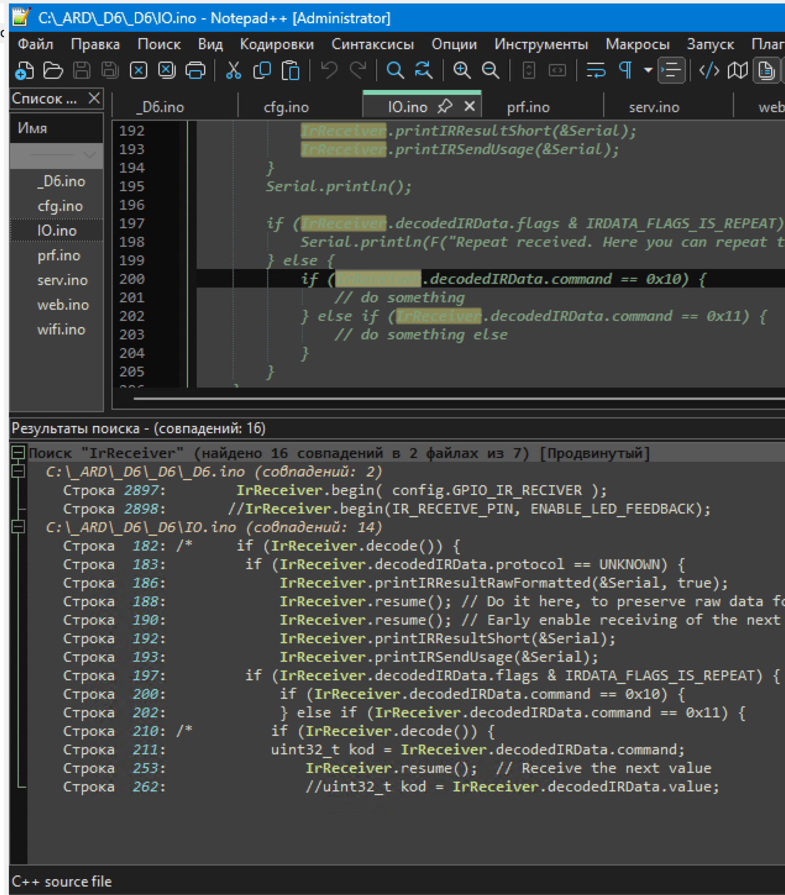 Заметил глюк по поиску из левого меню: Иногда не срабатывает Ctrl-z для выбора предыдущих вариантов. И курсор стоит и/или выделение - фиг там, не откатывается. Пару раз заметил и забил, думал что свеже запушенная и ничего не искал. А потом заметил, что при стоящем курсоре на выражении в “поиске” происходит откат в самом скетче ![]()