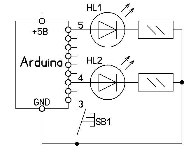 короткими нажатиями переключать первый светодиод, длинными - второй.