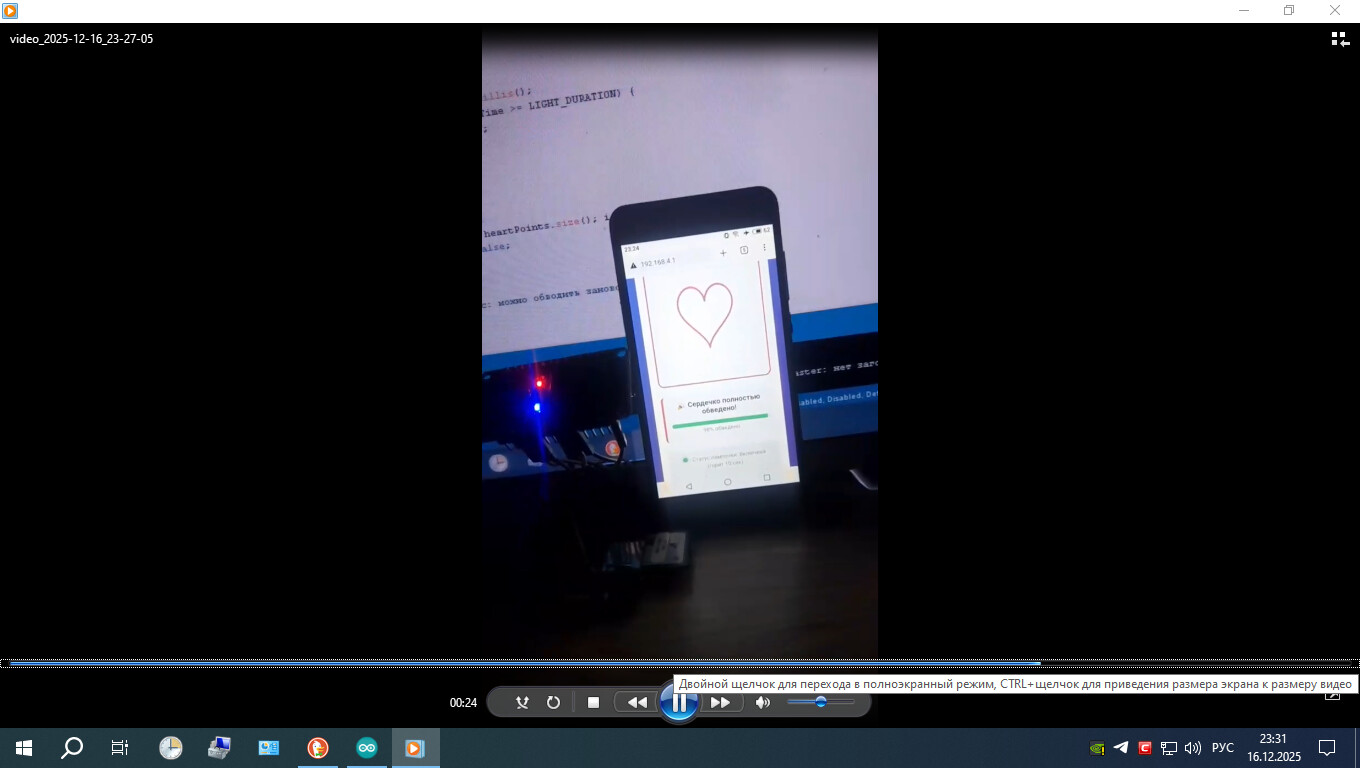 Serial.println("Сердечко завершено! Лампочка включена.");