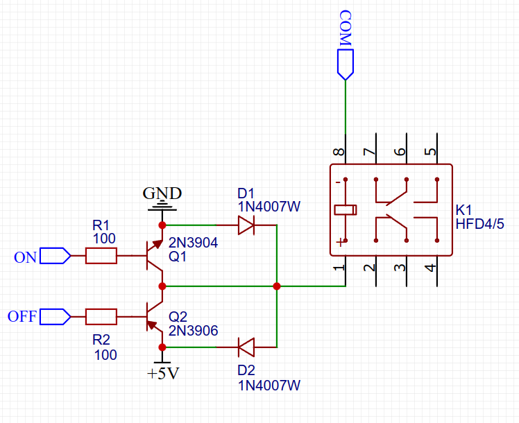 Реле поляризованное, ему надо на катушке полярность менять. Кстати, у меня в выключателе транзисторов не было, у меня поляризованным реле управляла мостовая микросхема TA7291S (просто в СВХ валялась, использовал, тем более, она изначально под индуктивную нагрузку заточена, так что никаких внешних глупостев не требует). Но так-то, проще и дешевле поставить мост из транзисторов.