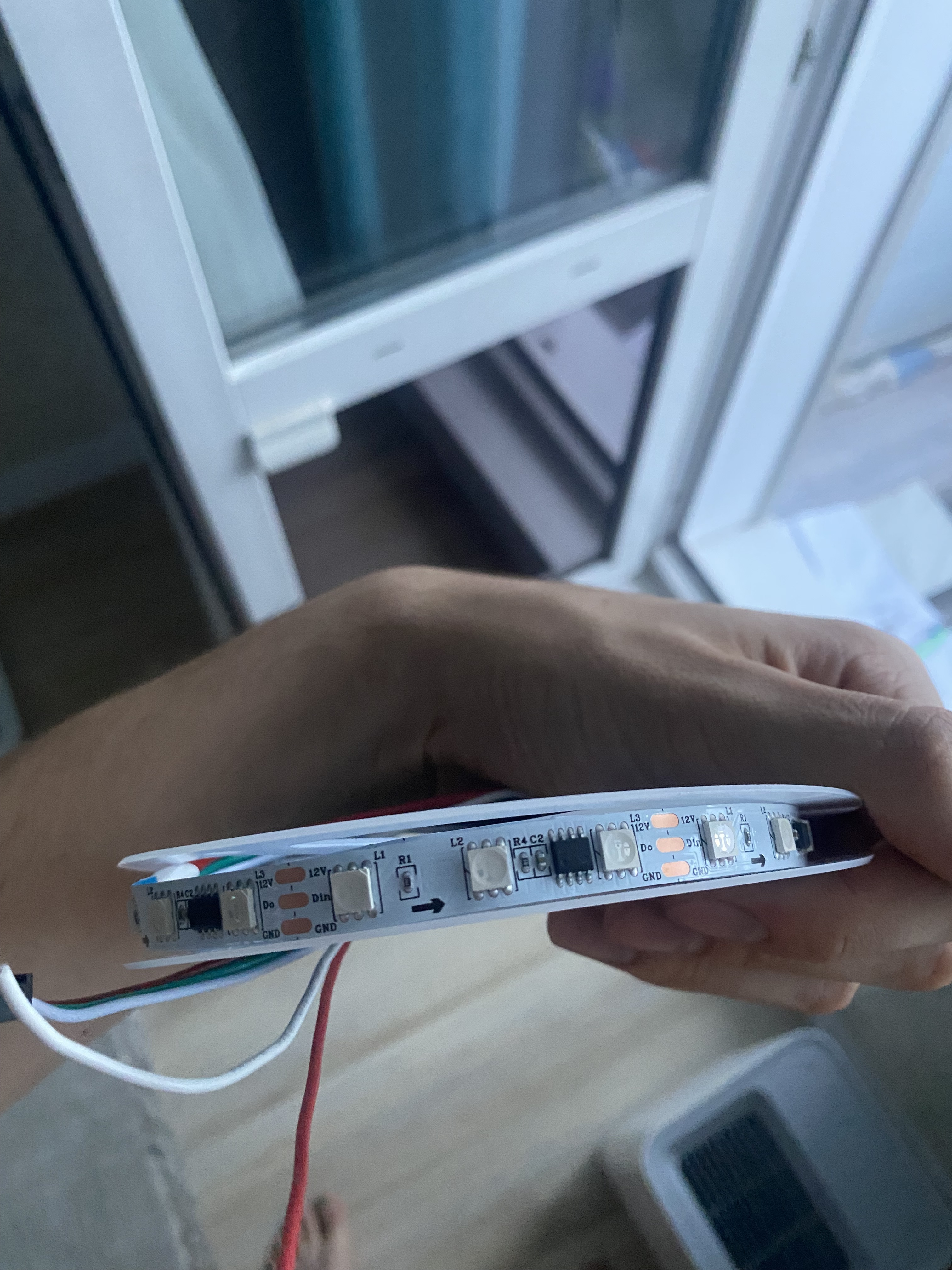 К уно был подключен только din от ленты на 7 пин и питание 12 вольт. Резистор не ставил, вроде на ленте был, думаю вот зря…