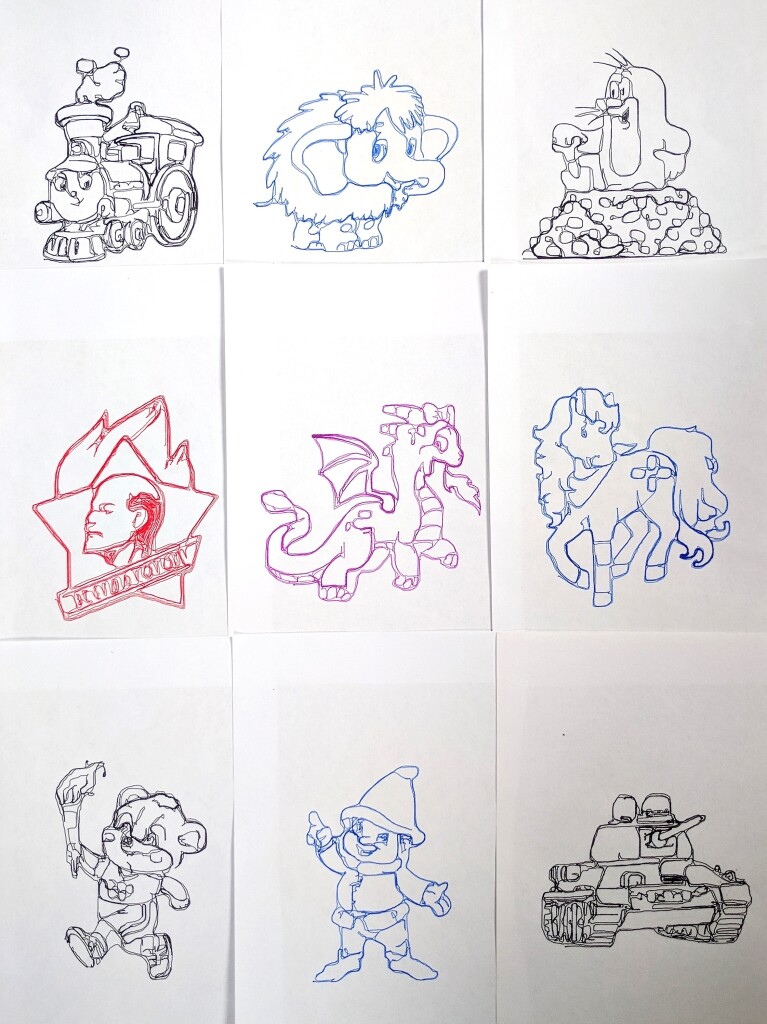 Я не утверждал инновационность. Любая игруха уже придумана. Я о простоте реализации. Если не возбуждаться на люфты, то прикольно, ребенка порадовать. Ну, с программой - G-code или его аналог для векторизации картинки из растра в плоттер или уже существует в открытом доступе, или выжимается из ИИ.