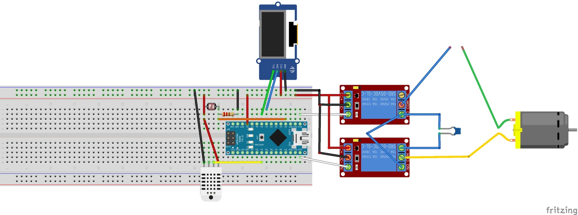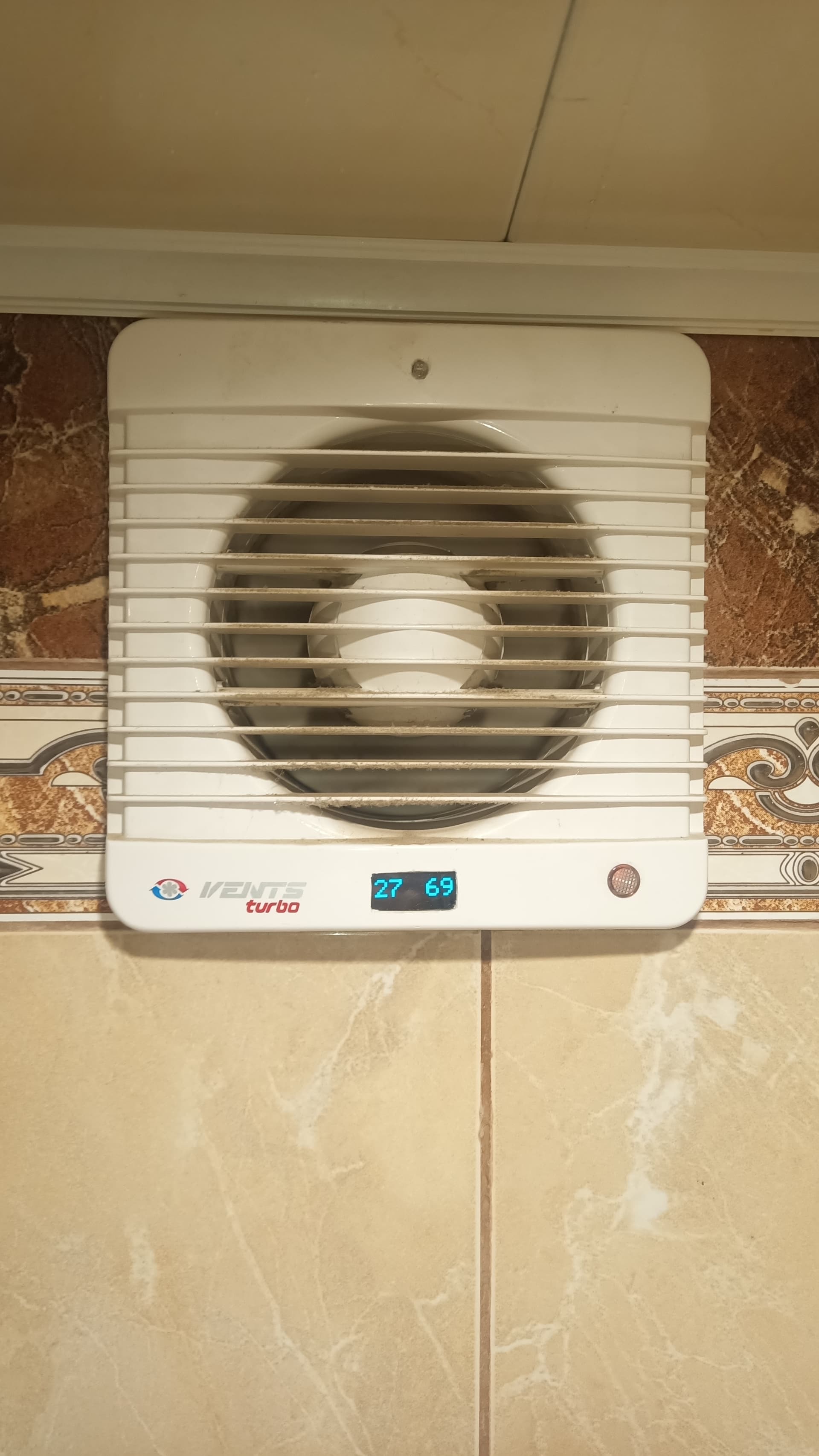 Доброго дня. У меня такая же система санузла. Я вставил в вентилятор DHT11, OLED дисплей, фоторезистор. Вытяжка включается/выключается по значению влажности. При включенном свете горит дисплей и мотор работает на половину мощности (если на полной, то в ванной становится прохладно). При выключении света дисплей гаснет (первый дисплей при постоянной работе за год практически выгорел) а вентилятор включается на полную мощность. Переключение режимов мощности сделал на конденсаторах.