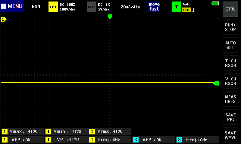 Он у меня до 400 вольт (FNIRSI® DPOS350P 4-IN-1 350MHz 1GSPS Tablet Oscilloscope Signal Genera ), я боюсь его сжечь, тыкая щупом в анод диода оптопары, ведь 360 вольт показывает мультиметр, а на самом деле пики могут и 500 вольт быть.