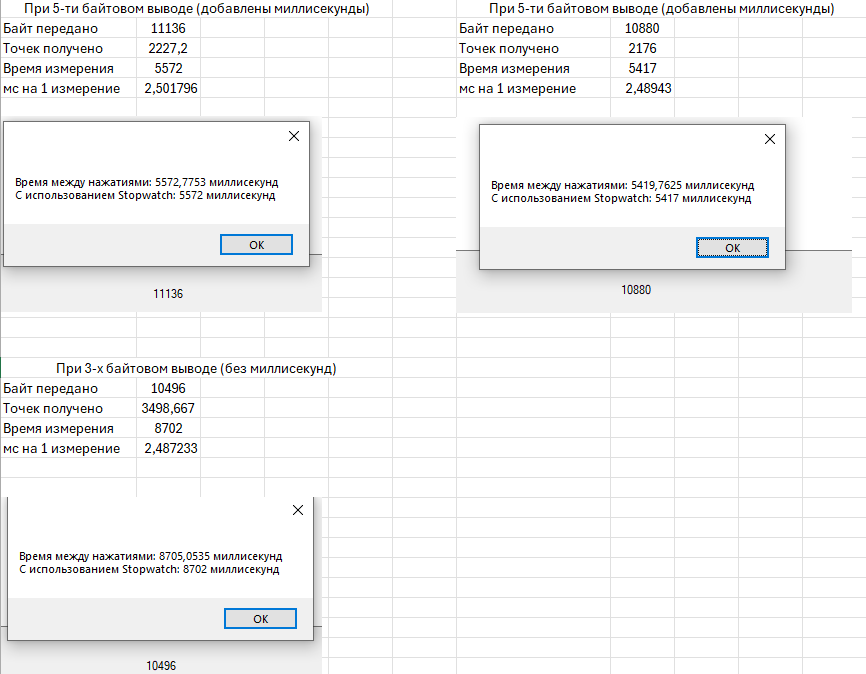 Добавил может временно миллисекунды. Скорость вывода в порт при этом можно сказать не меняется, но интереснее иметь время. Если убрать работу ADS скорость возрастает в разы.