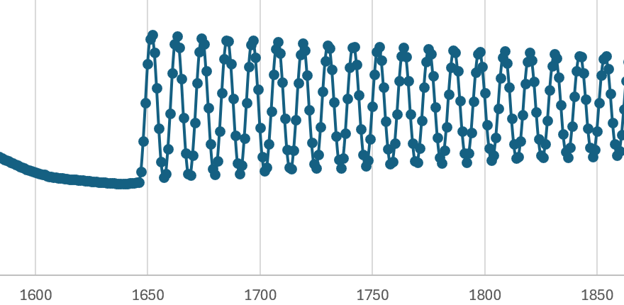 Результаты обработки затухающего колебания по количеству точек: