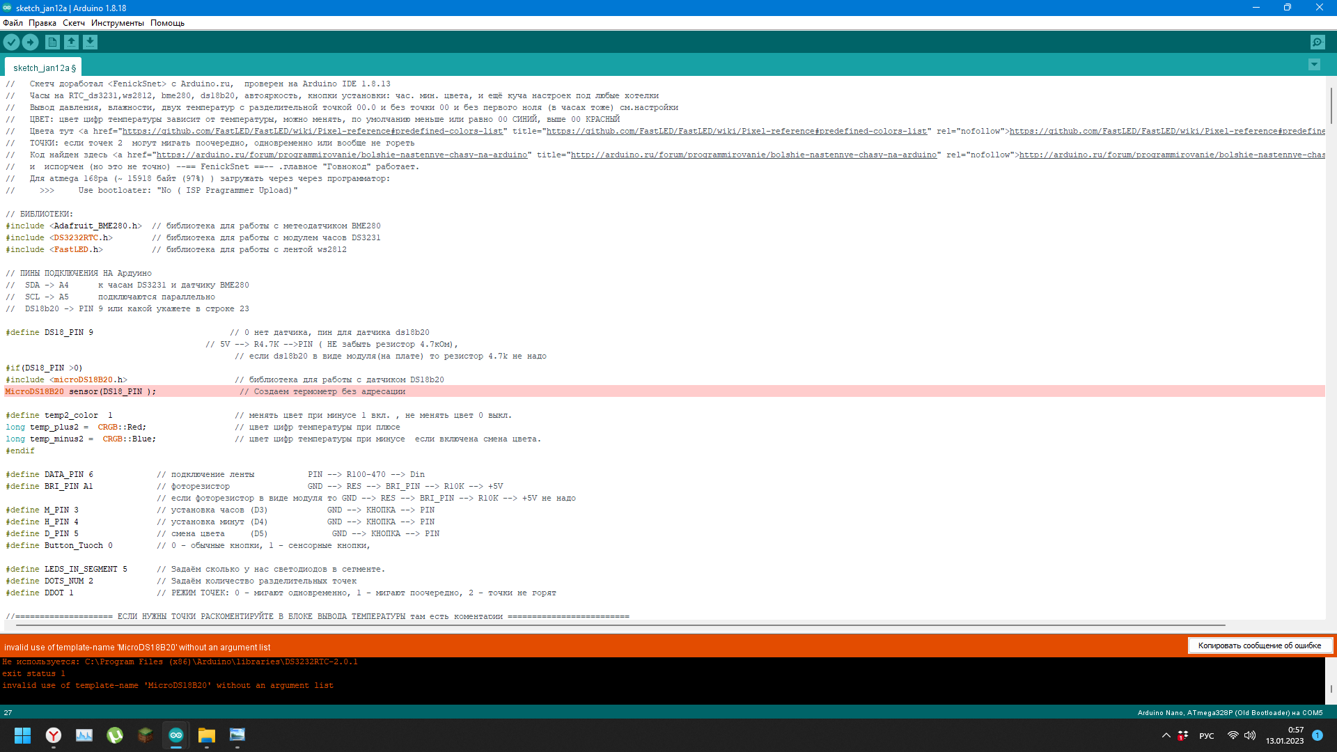 Скетч использует 17352 байт (53%) памяти устройства. Всего доступно 32256 байт.