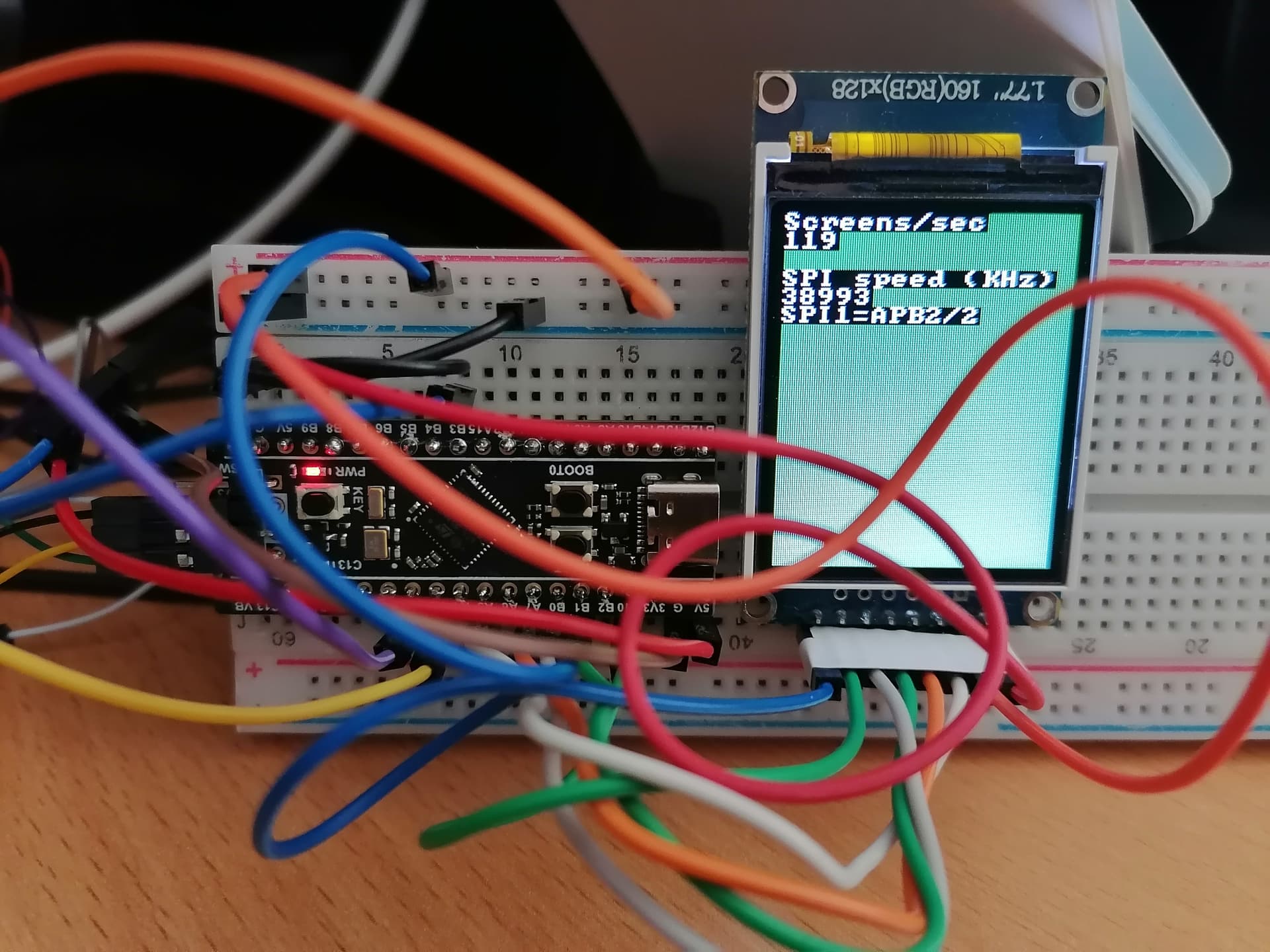 этот же ответ и @andycat - попробуйте шину SPI2, на ней, если правильно помню, частота вдвое выше