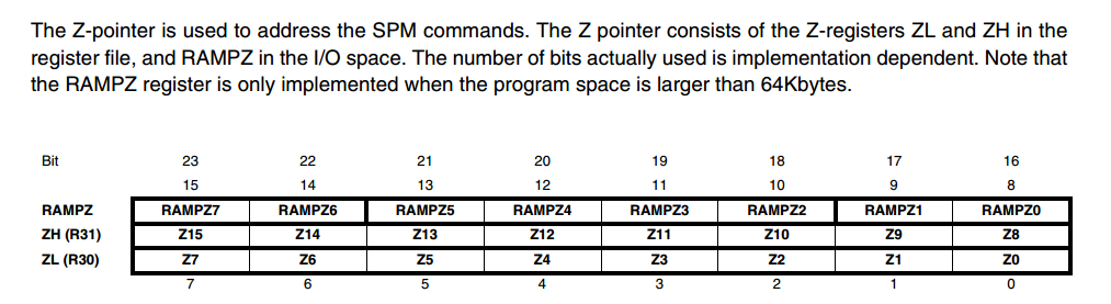 В твоём распоряжении три “нижних регистра”, они же, регистровые пары X, Y и Z , верно? Регистры у авр ВОСЬМИБИТНЫЕ, соответственно, регистровые пары будут ШЕСТНАДЦАТИБИТНЫМИ, верно? Каким образом ты сможешь косьвенной адресацией адресовать ячейку памяти больше, чем [ffffh]??? Как, карЛ???