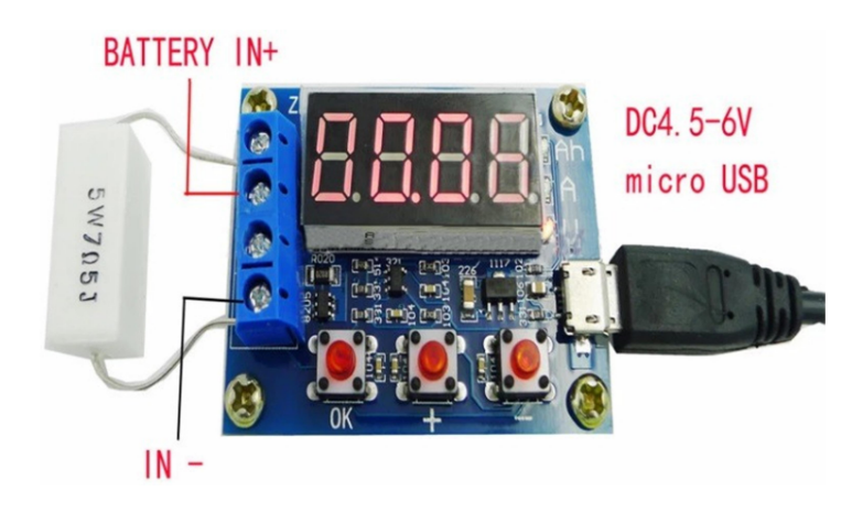 Идея измерения состоит в том, что заряженный АКБ разряжается на нагрузку (два резистора 7.5 Ом 5 Вт) , а тестер измеряет напряжение-ток и считает накопленные Ампер-часы.