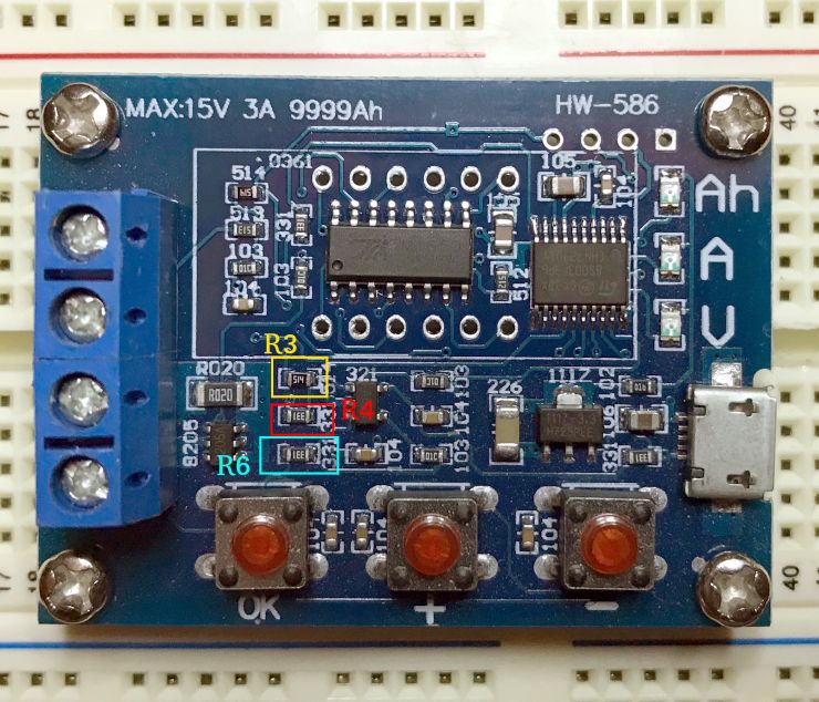 Для меня наиболее критично поправить установку нуля - тогда прибор начнет учитывать все токи. А с неправильным фактором шунта можно жить - достаточно домножить итоговую емкость на коэффициент и все. Так что в первую очередь нужно пробовать поменять R4. И заодно проверить резистор R3, так как он тоже может сдвигать ноль.