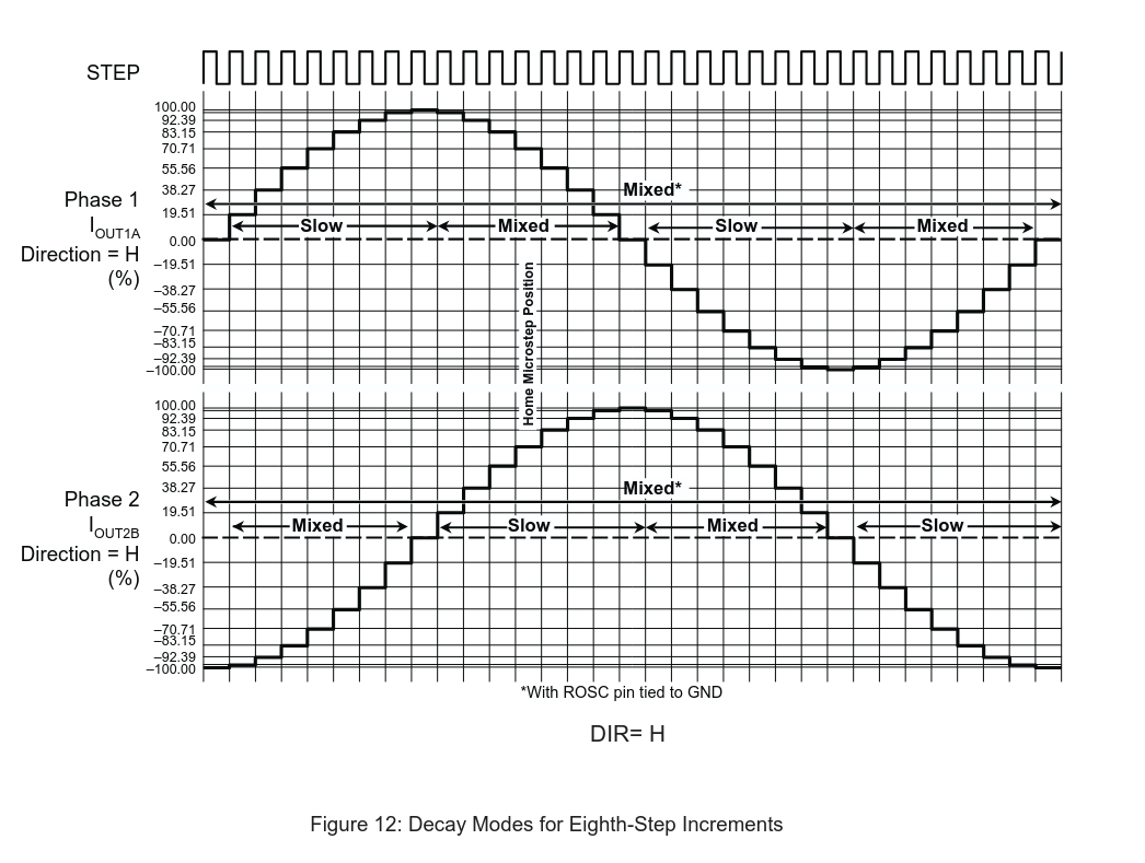 С другой стороны, у нас есть контроллер шаговых двигателей, который даёт ступенчатый синус. Казалось бы, погладь его фазу парой кондеев - и можно спокойно регулировать мощность, без всяких ШИМов. Осталось только найти шаговик, который может дать на выход нужные нам 6 ампер (В реальности - меньше, так как 6А - пиковое потребление при около нулевой разнице температур; при разнице в 20+ градусов потребление падает до 4 ампер и ниже).